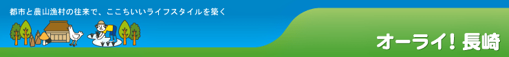 「都市と農山漁村の共生・対流」長崎県協議会(通称:オーライ!長崎)が、自然豊かな環境の中で農林漁業を体験してみたいなど、新しいライフスタイルを求める皆さんに、長崎の農山漁村への橋渡しとなる情報を提供しています。