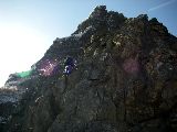 高岳の直下は、岩場となって、1箇所だけロープを出しました。特別難しい箇所では、ありませんが、もし滑ったりすれば、万が一ということもあります。