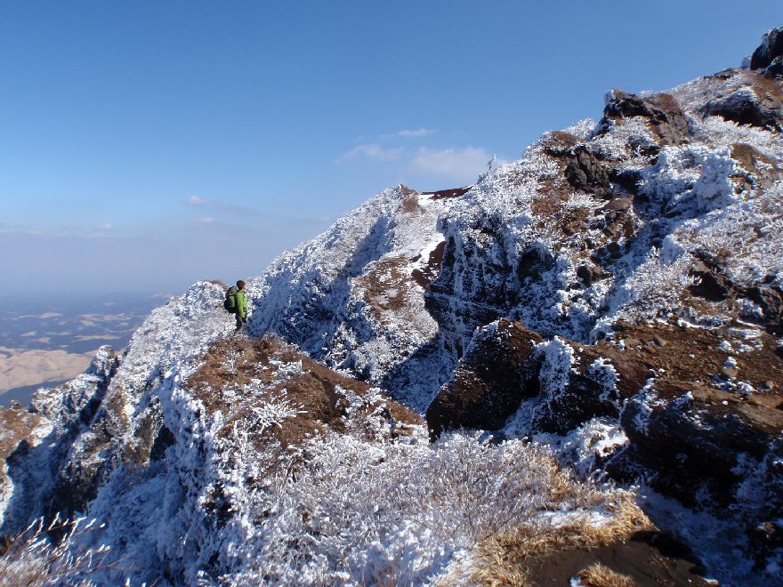 楽山会で由布岳に登ってきました。最も一般的な中央登山口から東峰に登りました。さすがに、霧氷登山で有名な由布岳です。