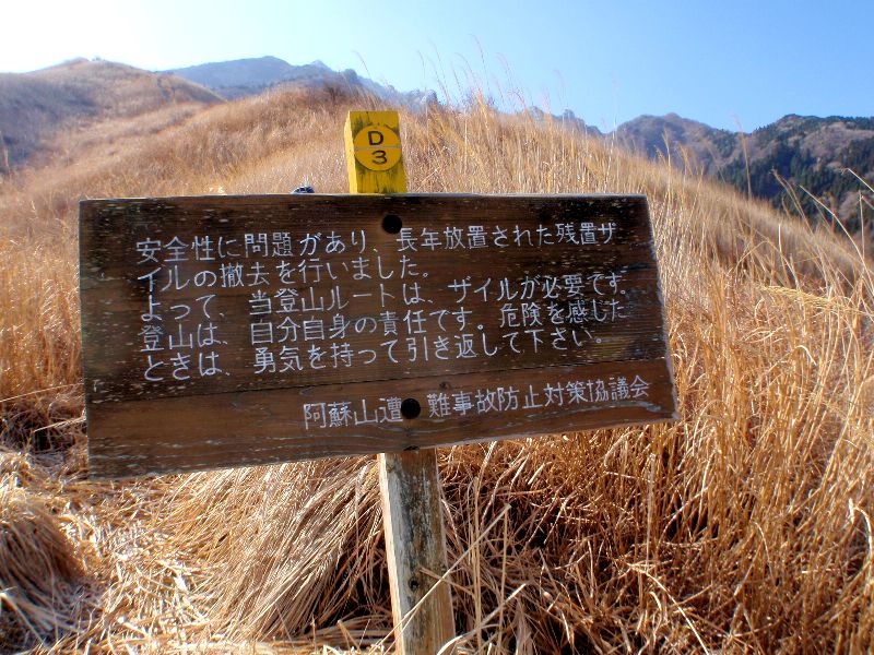 阿蘇高岳の鷲ヶ峰付近の岩場は、九州の谷川岳と言われるほど、遭難事故が多発しています。近年は、あまりありませんが、開拓がはじまった頃は、多くの若者の命を奪った山です。