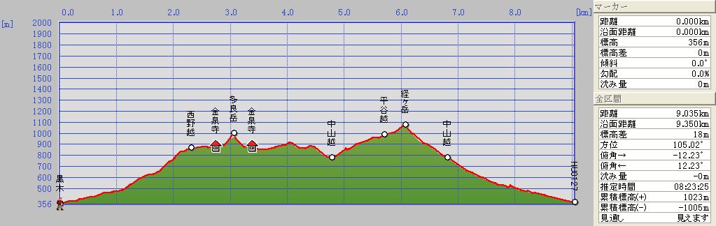 断面図に示されている推定時間は、上記のことを修正したうえで、休憩時間を含めたものです。