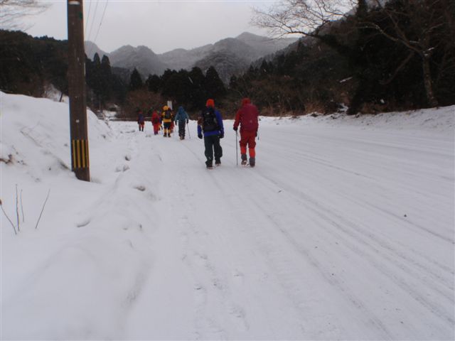 登りは、ラッセルしながらであったが、下りは、トレースも出来ており、あっという間に大船林道へ下りてきた。