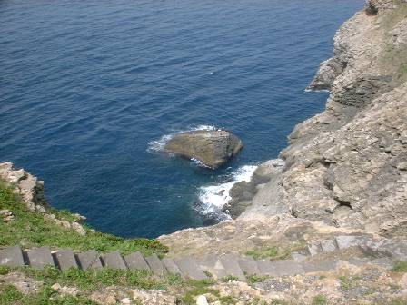 みんなに『黄金の水』と話していたが、正式には、『黄金の泉』だ。今でも年1回は、海上保安庁と地元の方が清掃に来ているらしい。おたまじゃくしが泳いでいるが、そのまま飲んでもだいじょうぶだと思うがこの時は、私と会長くらいしか飲まなかったようだ。浅藻では、有名な『出世水』だ。泉の前は、幕営可能の広場になっているのでテントを持ってきたいところだ。この広場には、つわが大かったが残念なことにすでにおわっていた。3月20日には、全くなかったのできっと4月中旬がベストだと思う。