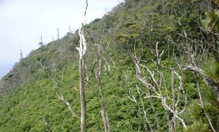 首を過ぎてからは、神崎半島の西側を歩く。このあたりは、かなりやぶっていて予想外に時間がかかった。この時期、花の甘い香りと、屋久島を思わせる風化した木が印象的な場所だ。