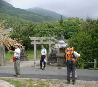 浅藻から神崎半島へ行くには、湾のふちに沿ってコンクリートの道があるのでここを車で行けるところまで行った方が早いが、マイクロバスは入らないので神社前の空地に車を止めて歩く事にした。ちなみにマイクロバスは、この空地までもはいることはできないのでさらに少し手前で下車する事にした。