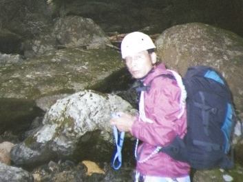 15mのCS滝までなんの問題もなく遡行する。問題のCS滝は、見るかぎり簡単そうだが途中に全く支点がないのでなかなか次の一歩がだせない。K山氏にリードで行くかを尋ねると行くということなので登ってもらうつもりでいたが、やはり私がリードすることにした。一応自分が計画した山行なので難所は責任持つという考えなのです。