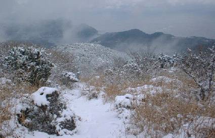 対馬にめずらしく雪が降った。山はうっすらと雪化粧、さっそく有明山に登る事にした。