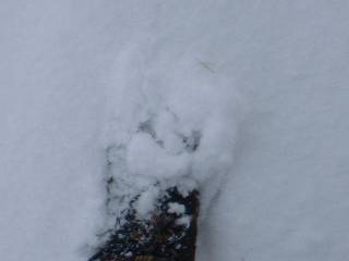 山頂は、15aの積雪。しかし、風が強かったので翌日に登った時は、さらに積雪があったにもかかわらず、雪はほとんど飛ばされていた。山頂付近は、広場になっていてテントを張るにはちょうどよいが、風が強いのが難点だ。14日の山頂は、アルプスの稜線を思わせるような風だった。こんな日にテントを張ると冬山のテント設営の経験になるだろう。