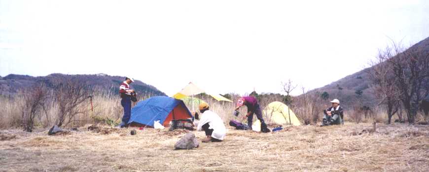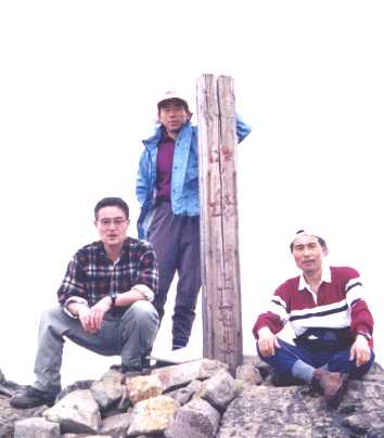 職場の先輩D津氏(左)とH氏(右)就職した翌年のGWに3人で九重にバイクでツーリングに出かけ、赤川温泉から久住山に登った。その時以来、2人とはちょくちょく山に登っている。H11年に2人とも長崎の同じ山岳会に入会したので、今後は、冬山や岩もいっしょにできるので楽しみだ。
