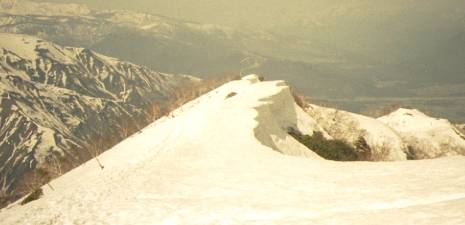 白岳の山頂直下に雪庇