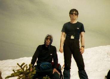 五竜山荘に7時前に着き、受付前に不要な物をすべて置いて五竜岳のピークハントを行った。昨年の夏に私とヤンマー礼子嬢は一度登っているが、山頂直下の岩場はすべて雪の下で全く様相が変わっていた。しかしながら、年によっては、山頂直下の岩場は、氷化して危険だと聞いていたがこの時は、階段状にステップが切られ下りもザイルは使用しなかった。