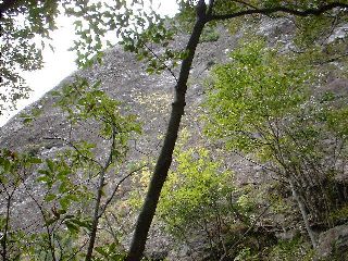 三角点から白嶽には、忠実に稜線をたどることになる。岩峰がいくつかあるので適当に巻く。三角点から白嶽へ行く場合は、真中付近の岩峰のみ左側へ巻きあとはすべて右側を巻いた方がよい。特に白嶽山頂直下の岩峰は必ず右側へ巻いて岩壁の基部に沿って歩く。しばらくすると白嶽登山道にでる。