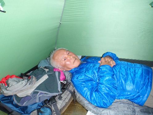 この日の午後からは、かなりの雨となったが、我々二人は、贅沢にもテント内で昼寝としゃれこんだ。