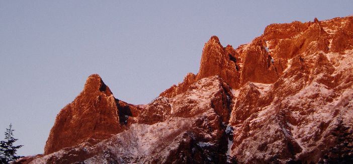 28日は、雲ひとつない快晴で夕刻、行者小屋から見る横岳西壁の岩峰が美しかった。