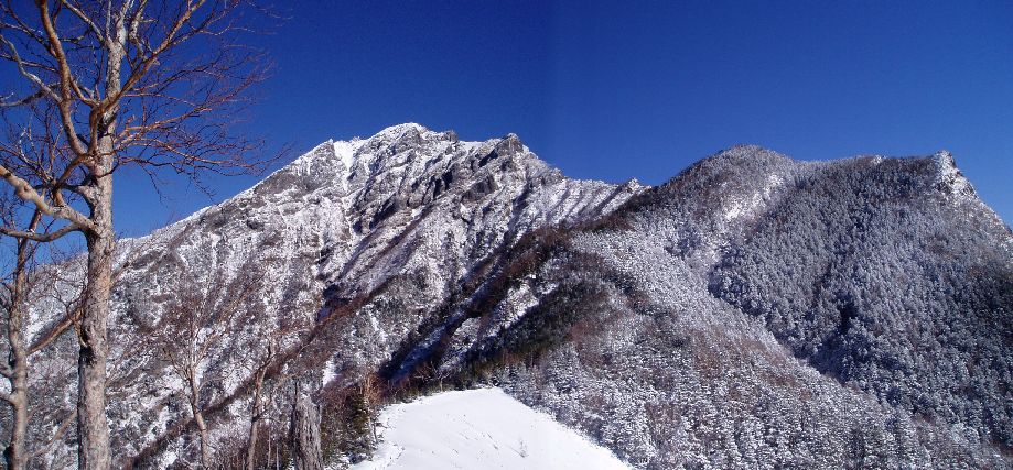 平成14年1月に登った際は、南稜の核心部P3「広河原3ルンゼ最上部のガリー 」は雪があり、念のためにザイルを出した程度といった状態だったが、今回はガリーが氷化していて困難であった。南稜は、雪が少ないと少し難度があがるようだ。平成15年12月現在、フィックスロープもあり支点も整備されているので問題ない。