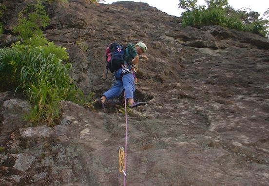 直接、岩から取り付いたので垂直に標高をかせぐ