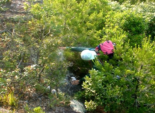 ザイルをつかったのは、最初の20mの岩のみ。ここも簡単に巻くことができるので、初心者でも経験者が同行すれば縦走は可能。ただし、数箇所足場が悪いところもあるので8ミリ程度の補助ロープがあったほうがよい。いずれにしろ、藪こぎとなるので縦走は冬場がよいだろう。