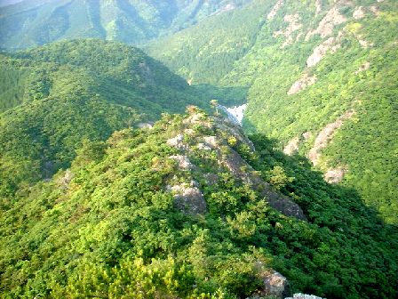 城山の一般登山道は、写真の岩峰の裏側にあるが、今回は直接切り立った稜線に登って城山まで縦走した。