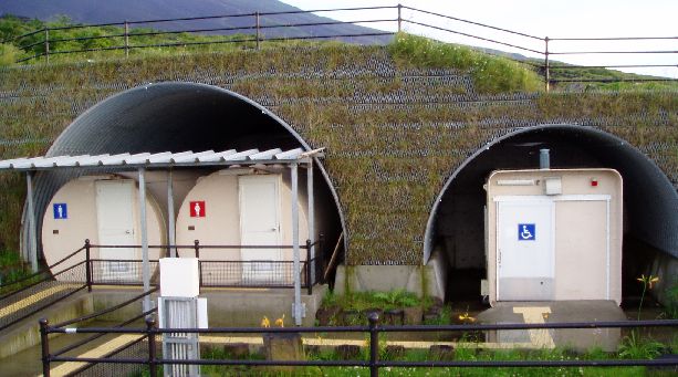 過去に土石流で流されたトイレは、ごらんのようなシエルター式の作りとなっている。ここでの土石流を想像するだけで恐怖を感じる。