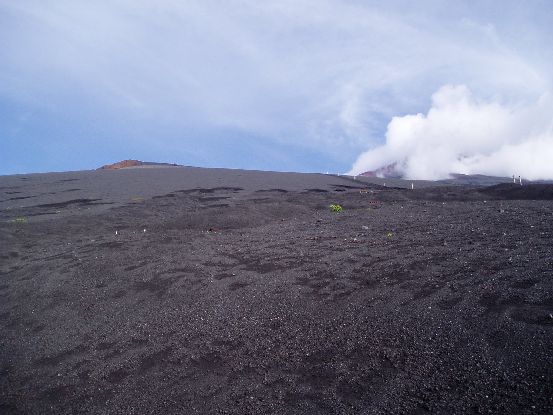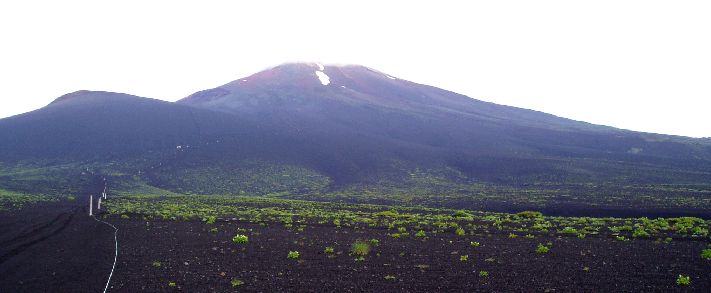 御殿場からの登山道は、広大な富士のすそ野を歩くことになる。視界がきかない日は先が見えず精神的にめげるような気がする。