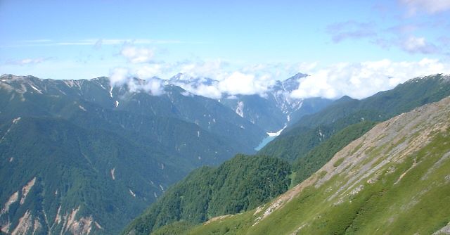 当初、8日の高速夜行バスで名古屋経由で入山予定であったが、台風10号の影響を考慮して、翌9日に博多から新幹線、名古屋から急行「ちくま」で松本経由で入山した。今回は、対馬出発時点で予約しておいたタクシー会社から中房温泉への道路が雨の影響で交通止めになっているという情報が入るなど出発直前までいろいろ考えることが多く、少々気持ちがなえてしまっていたが、林さんのぜひ行きたいという気持ちが強く、交通手段と天気予報に不安をかかえつつ出発となった。