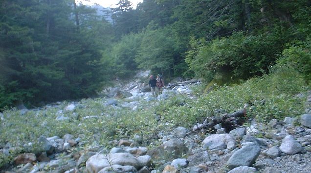 ご主人の話を聞いて、湯俣経由にしなくて正解であったとホットする。とりあえず、北鎌沢出合までは何とか本日中に行かなければならないので気合を入れて先を急ぐ。