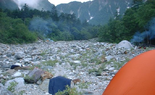 この日は、小梨平のキャンプ場で風呂に入り、ささやかながら山行の打ち上げを行った。