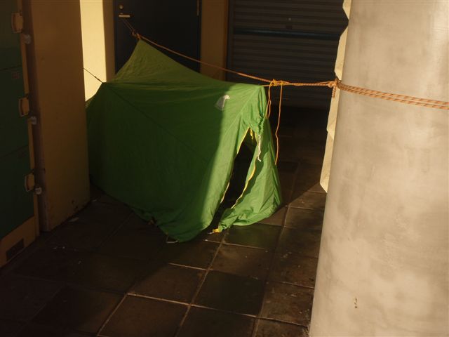 扇沢駅は、夏場は駅の軒下で多くの登山者が寝ているようです。
