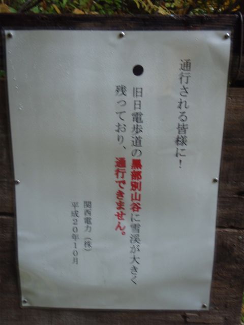 関西電力の考えも理解できます。下ノ廊下を歩く場合は、バリエーションルートと同じくらいの気持ちが必要かもしれません。