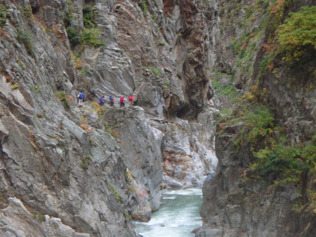 下ノ廊下は、途中にエスケープルートなく、黒部ダムから阿曽原温泉までは、16`あまりを1日で歩かなければなりません。