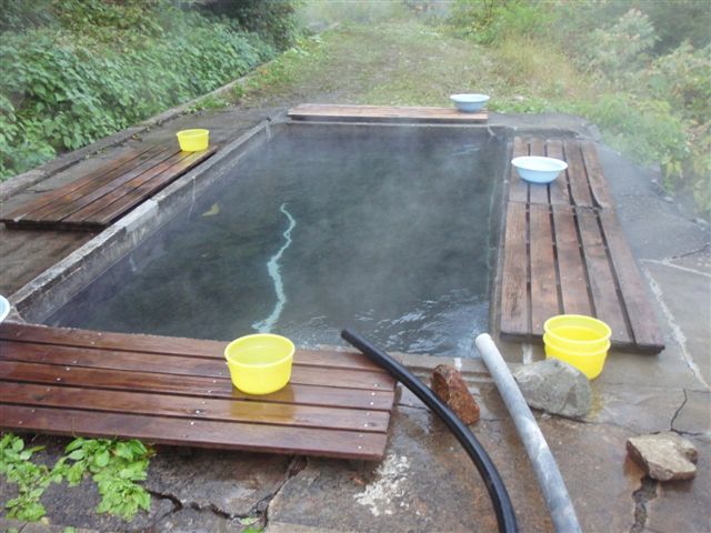 阿曽原温泉の露天風呂、男女が時間で分けられていますが、おばちゃんが時間より早くきたので、男性人は、あわてて時間前に出るはめになりました。