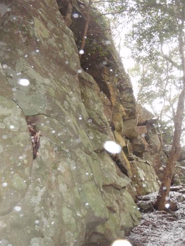一枚岩の砂石です。この道は、車でも通行できるくらいの幅があります。砂岩を砕いて、道を作ったようです。