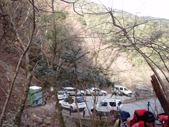 車は、林道に沿って縦列駐車されていました。