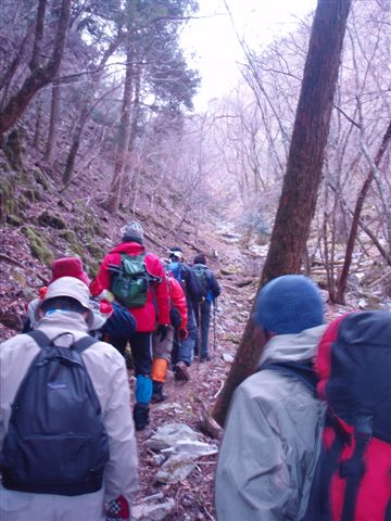 仰烏帽子山のルートは、元井谷からと椎葉谷からの2コースが通常使われていますが、我々は、元井谷往復のルートを歩きました。