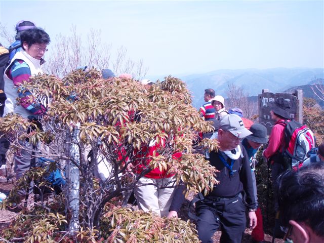 大勢の登山者でにぎ合う狭い山頂。