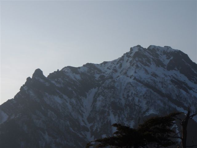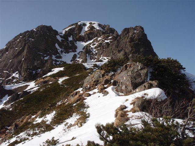 初めての天狗尾根は、可能な限り直登して越えました。春山であったので何とかなりましたが、冬山の単独で同じ登り方をすることはできないと思います。天候に恵まれ助かりました。