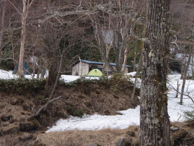 外観は、写真をの通りだが、内部は雨風を凌ぐには十分で、この小屋でテント泊をするのは、今回で3回目になる。