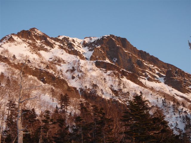 私たちは、明神岳の山頂にダイレクトに抜けました。もう日暮れ近かったので、少し緊張しましたが、何とか主峰に抜けることができました。