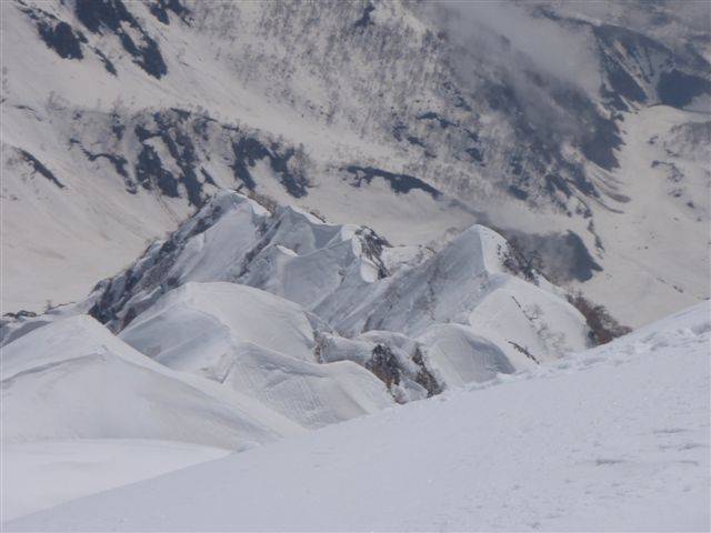 昨日は、この細い稜線を登ってきました。何箇所かは、雪が崩れるのではないかと思われる箇所もありました。感覚的には、雪稜は、、3月中が安定しているような気がしますが、3月は、まだ冬山で寒さが厳しいです。