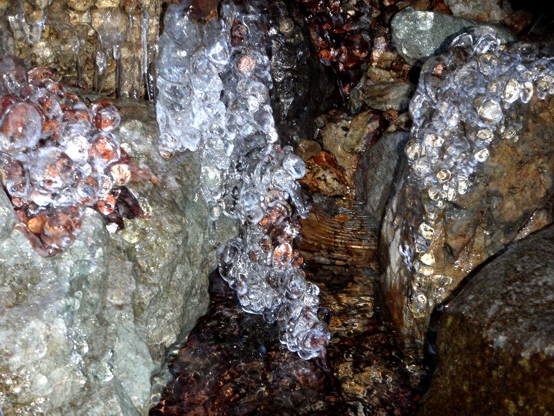 今回歩いたルートが北斜面に面していたので、多くの氷を目にしました。それらの氷のほとんどがにごりもなく、透き通ったとても美しい氷でした。