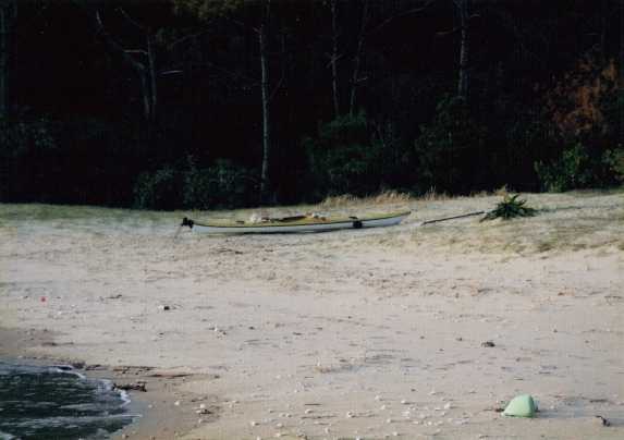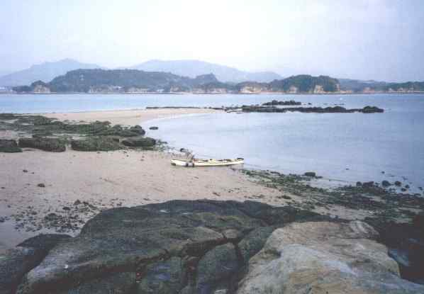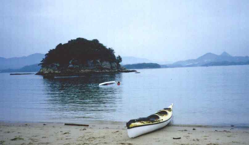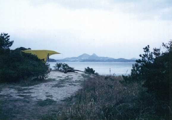 ここは、金重島より1.2`程、鹿子前よりで、鹿子前から直行で約30分(約3`)。佐世保シーカヌークラブの会員さんがが頻繁にキャンプしている。金重島よりテントサイトがかなりせまいので多い時は、互いにゆずりあおう。張れない場合は、いさぎよくあきらめ金重島へどうぞ。流木は、金重より豊富だが、以前よりは少ない。(キャンプする人が多いからでは。)