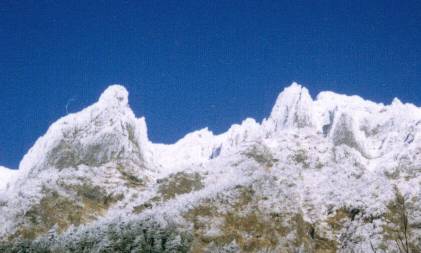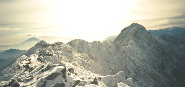 登攀終了点(横岳)から望む富士山と赤岳(右)