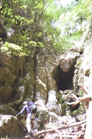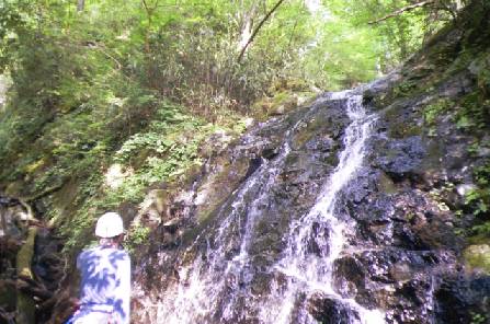 15mのCS滝までなんの問題もなく遡行する。問題のCS滝は、見るかぎり簡単そうだが途中に全く支点がないのでなかなか次の一歩がだせない。K山氏にリードで行くかを尋ねると行くということなので登ってもらうつもりでいたが、やはり私がリードすることにした。一応自分が計画した山行なので難所は責任持つという考えなのです。