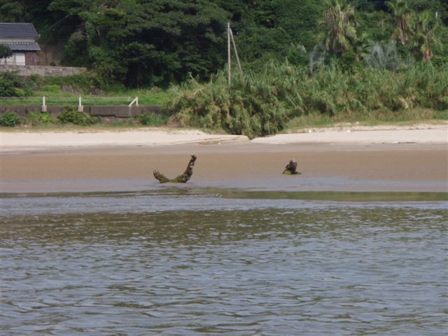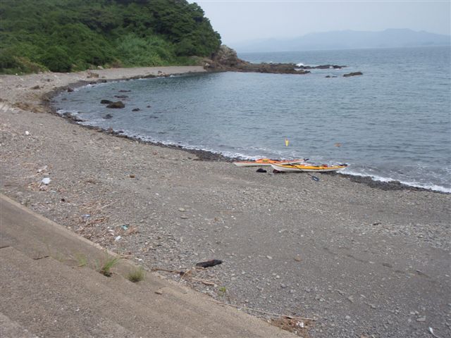 24日は、志々伎の船越の手前の玉砂利の浜でキャンプしました。