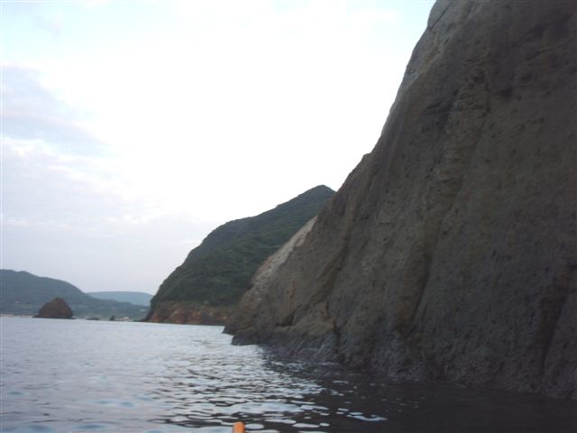 私は、平戸では、この海から切り立った岩場を漕ぐのが最も好きです。いつか、海ぎりぎりのラインをトラバースしてみようと思います。