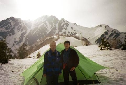 昨日が夜行ということで、明日早朝から行動して唐松まで縦走する事にして、大遠見山で幕営する事にした。山頂付近は広くなだらかで冬山とは違い風がないのでどこにでもテントを張れる状態であった。テントは、今回購入したヘリテイジのエスパース・マキシムを使用した。