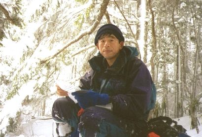 前夜かなりの降雪があり、御小屋尾根は下りであるにもかかわらず、ラッセルでかなりのアルバイトをしいられた。冬山を経験して6年目で、はじめてラッセルした。九州の最西端、長崎県人である所以か。浦野氏の現在の山行状況を聞くと、私の冬山の15シーズン分くらいを1シーズンで経験しているようだ。長崎県人である我々は、雪山はせいぜい1年で多くて3回程度だ。正月及びGWのアルプスと2月の大山くらいだ。今度から降雪直後の久重や祖母、阿蘇の氷壁及び冬壁にも積極的に出かけたい。とにかく経験することだ。舟山十字路までは、 ラッセルのために思った以上に時間がかかって到着。