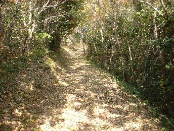 登山道は、薮がきれいにはらわれ非常に歩きやすく、どんぐりがたくさん落ちていた。最近は、どこに登ってもスギ・ヒノキが植林されているので、どんぐりが落ちていると心がなごむ む気がする。