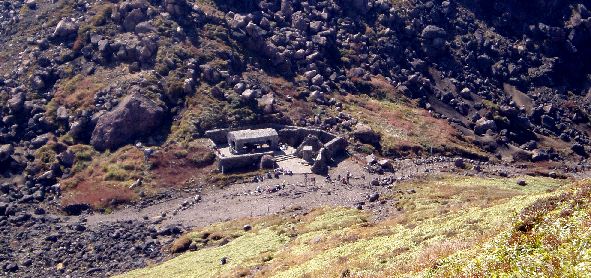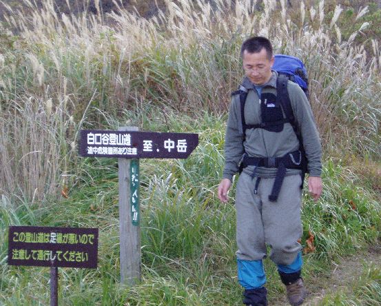 久住山からは、稲星山の鞍部に降りてから、中岳と白口岳にはさまれた白口谷を法華院温泉へ下山して坊ガヅルキャンプ場を目指す。今回はテント持参の上、当初から避難小屋に他に利用者がいなければ小屋に泊まる予定であった。