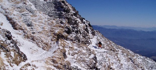 林さんが対馬へ転勤となって1年目、GWの鹿島槍ヶ岳東尾根、夏休みの北鎌尾根に引き続き、今回の正月休みに八ヶ岳のバリエーションルートを登ることができた。同じ目的を持って、いっしょに対馬でトレーニングできるので都合が良い。毎日隣り合わせで仕事も行なっているのだが、山行の連絡はメールですることが多い。対馬にもADSLが導入されて本当に良かった。あとは、林さんが地図ソフトカシミールを使ってくれればより詳細な打ち合わせがメールでやり取りできるのだが。